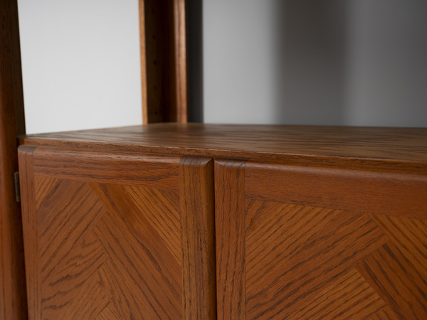 Both cabinets and shelves are height-adjustable and freely repositionable, allowing the layout to be tailored precisely to the space and function.