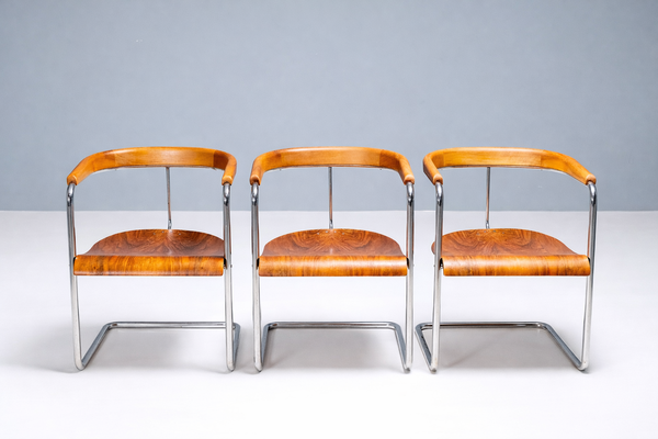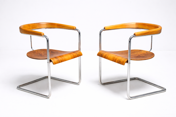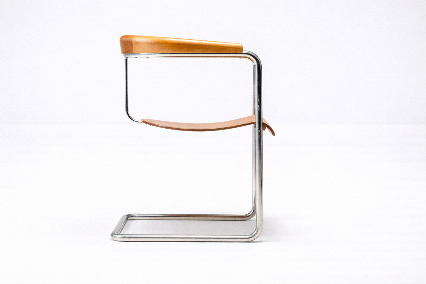 This cantilever chair, armchair originates from a period deeply linked with the ideals of the Bauhaus and modernist design. Today, Halabala’s works are considered milestones of Central European modernism and rank among the most desirable collector’s items.