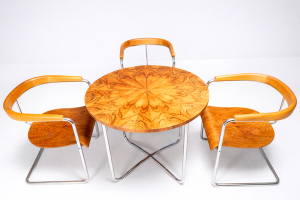 Cantilever chairs, armchairs of this type showcase Halabala’s finesse in merging structural innovation with ergonomic harmony. These designs appear in museum collections, architectural exhibitions, and curated design galleries.Technical specification