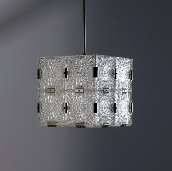 • Karel Volf – created elegant floor and pendant lamps using triplex opal glass for upscale interiors.