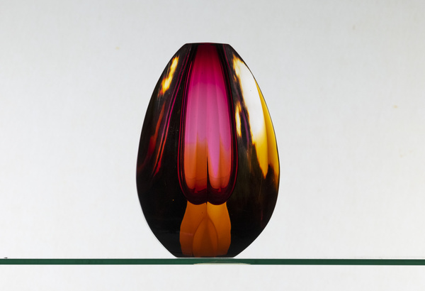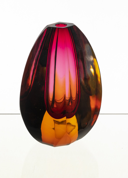 Hand-cut oval shaped glass vase designed by Jan Kotík for Exbor glassworks.