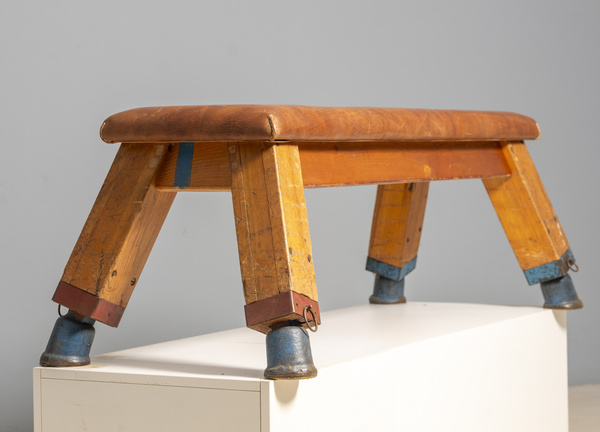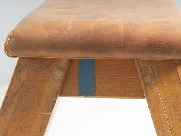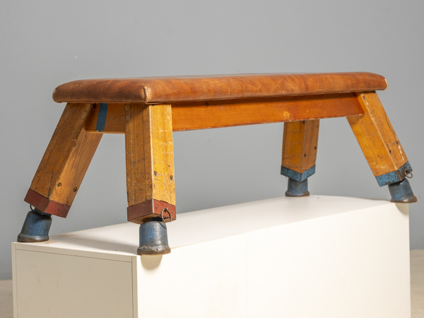 Benches like this were widely used in school gyms, Sokol halls, and athletic facilities between the 1930s and 1950s. Built to endure daily training, they were crafted from solid spruce or pine, reinforced with cast-iron components, and upholstered with strong natural leather. Original pieces are now highly sought after and frequently appear on curated design platforms such as 1stdibs, Pamono, and VNTG.