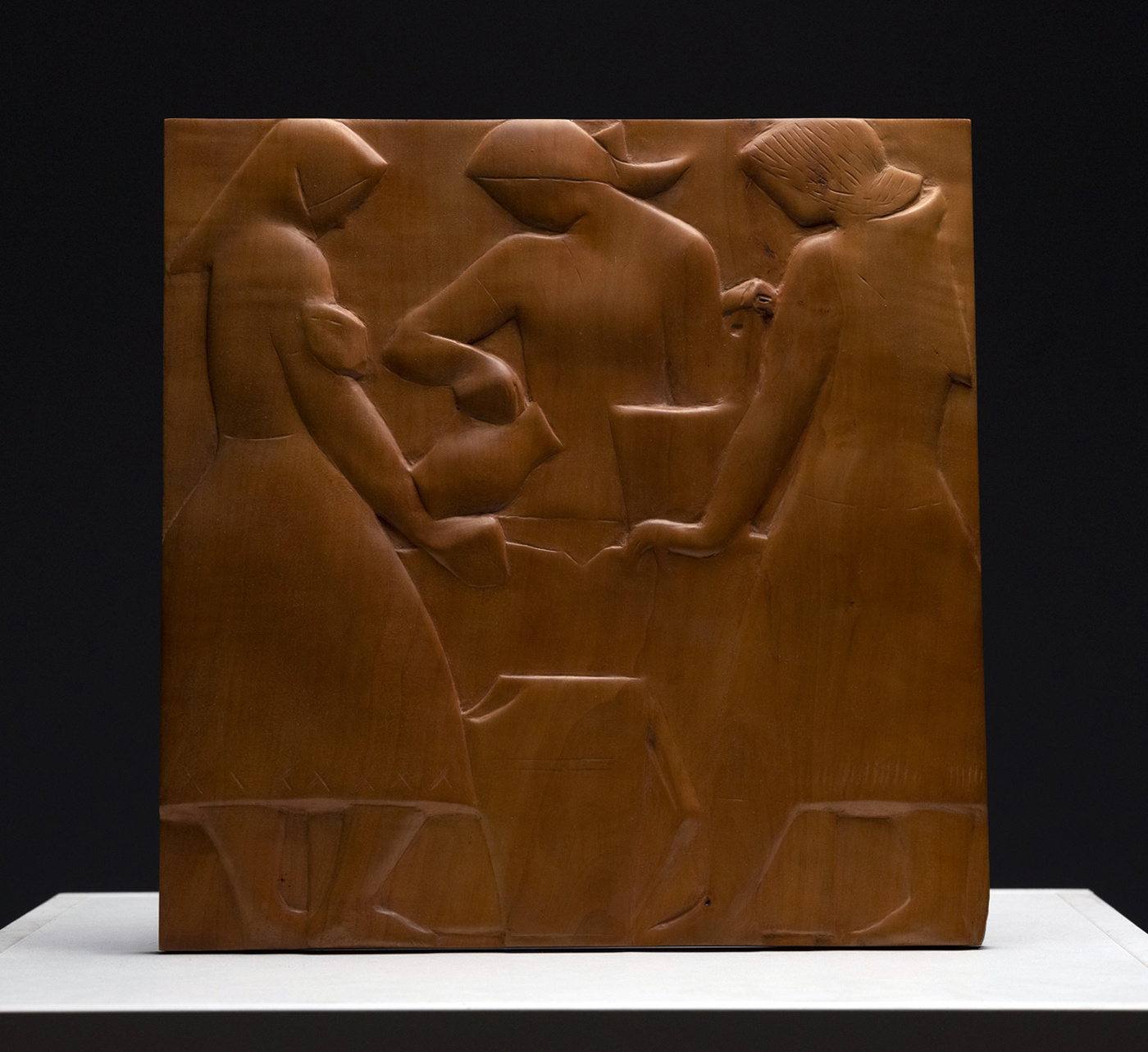 Hand carved wood relief, graduation work by student of one of the Prague's school of crafts and applied arts, 1930s.